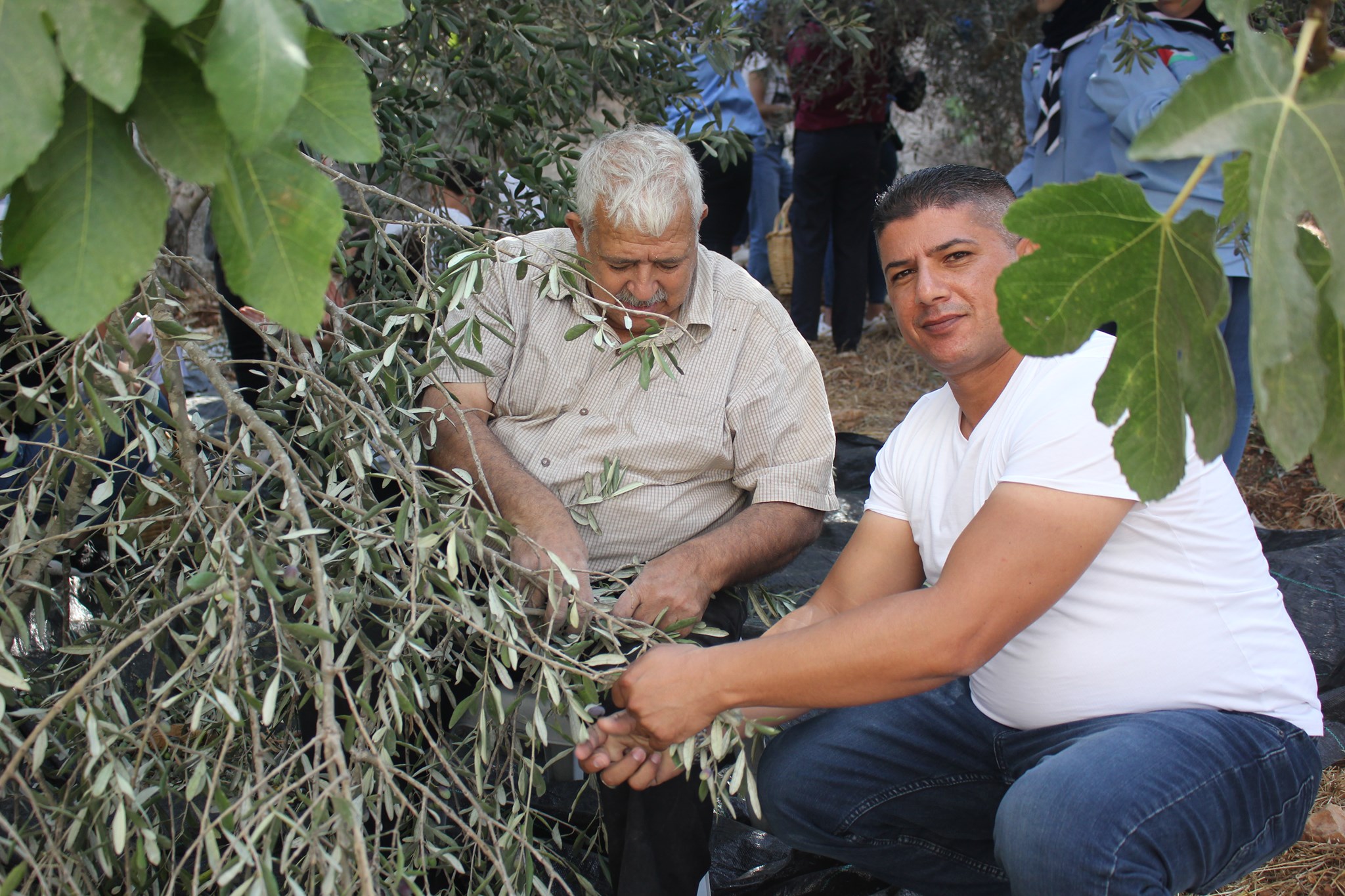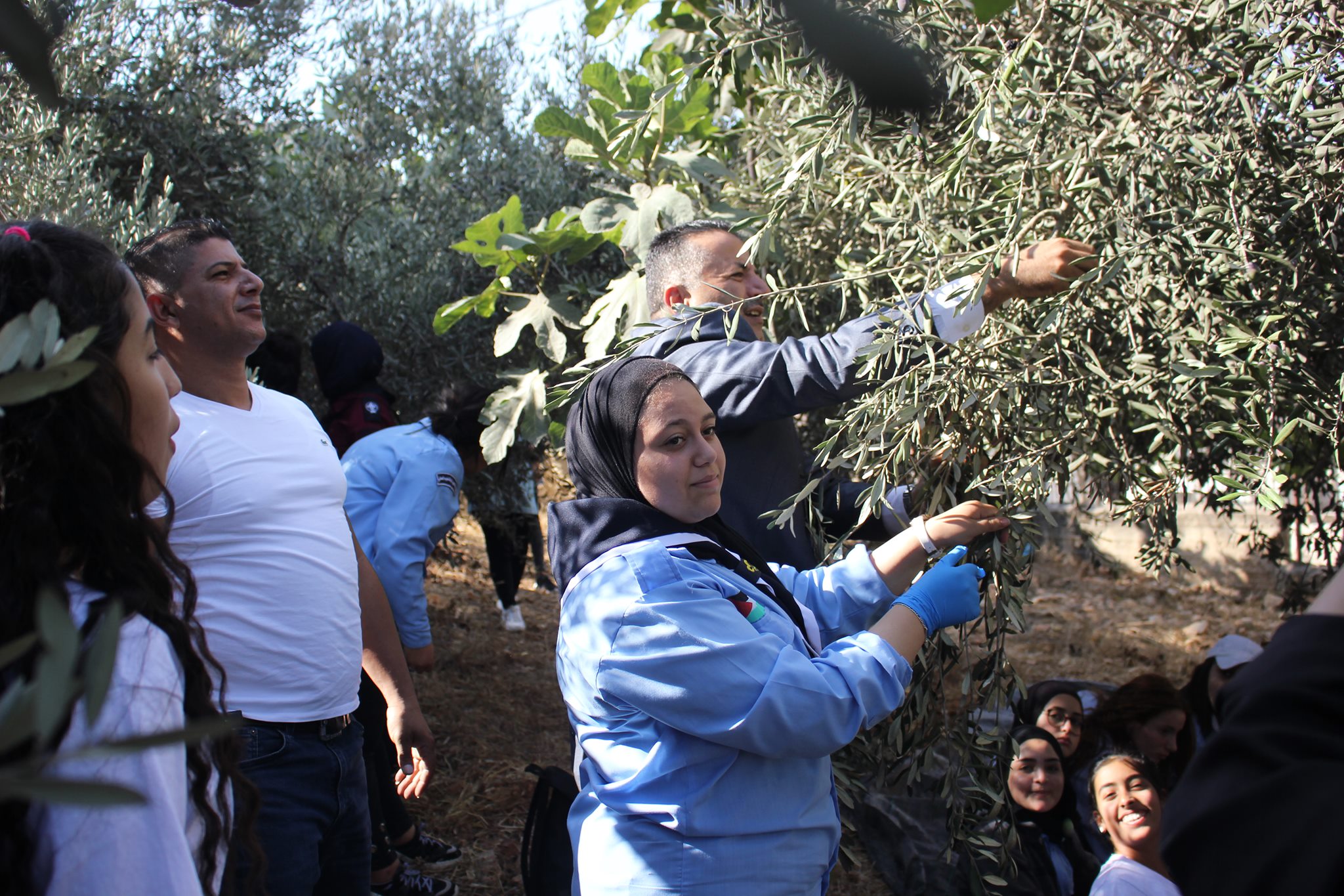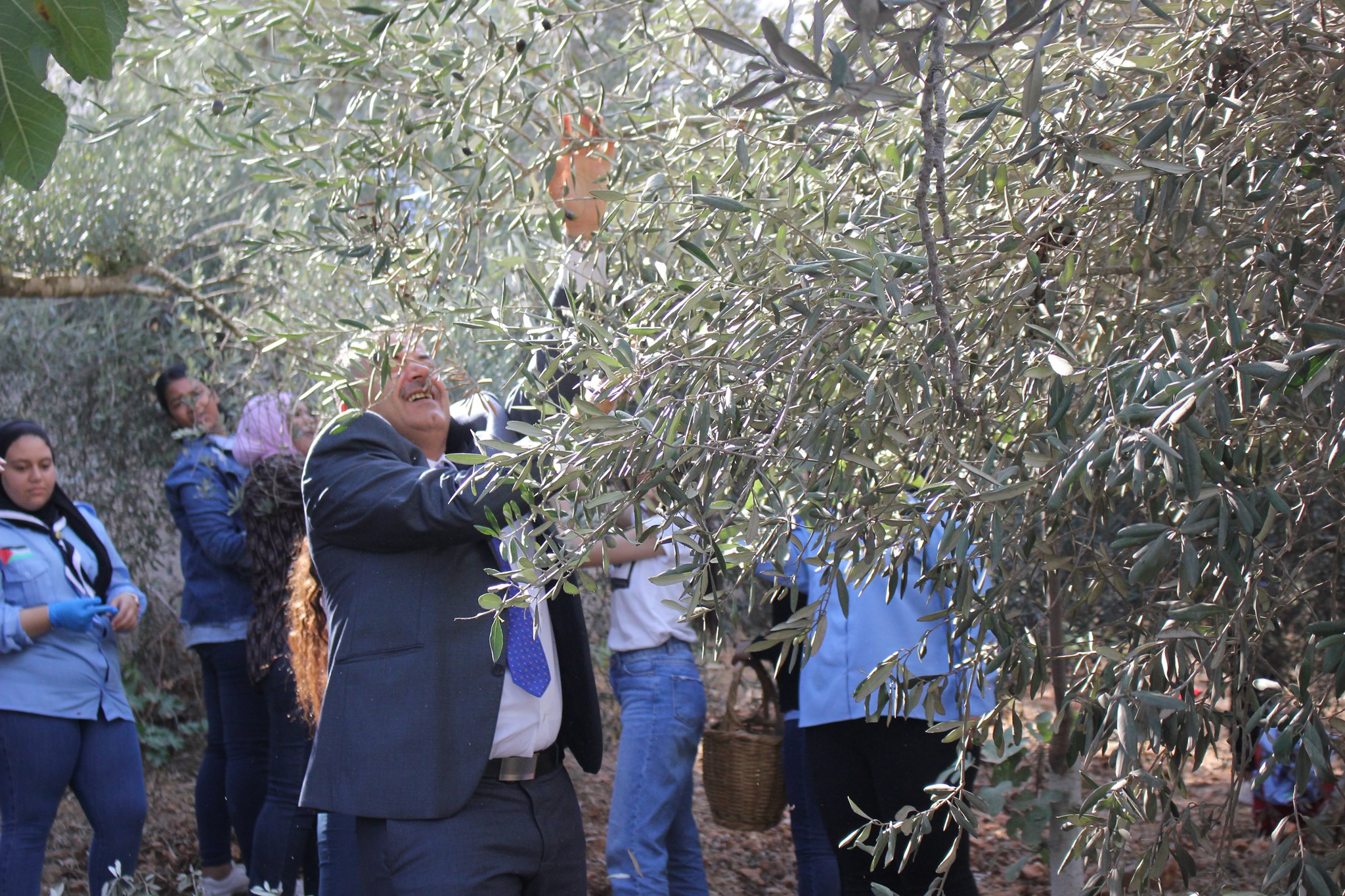 .رئيس البلدية ربحي دولـة خلال مشاركته الى جانب طالبات من مدرسة بنات بيتونيا الثانوية في يوم تطوعي لمساعدة الأهالي في قطف ثمار الزيتون