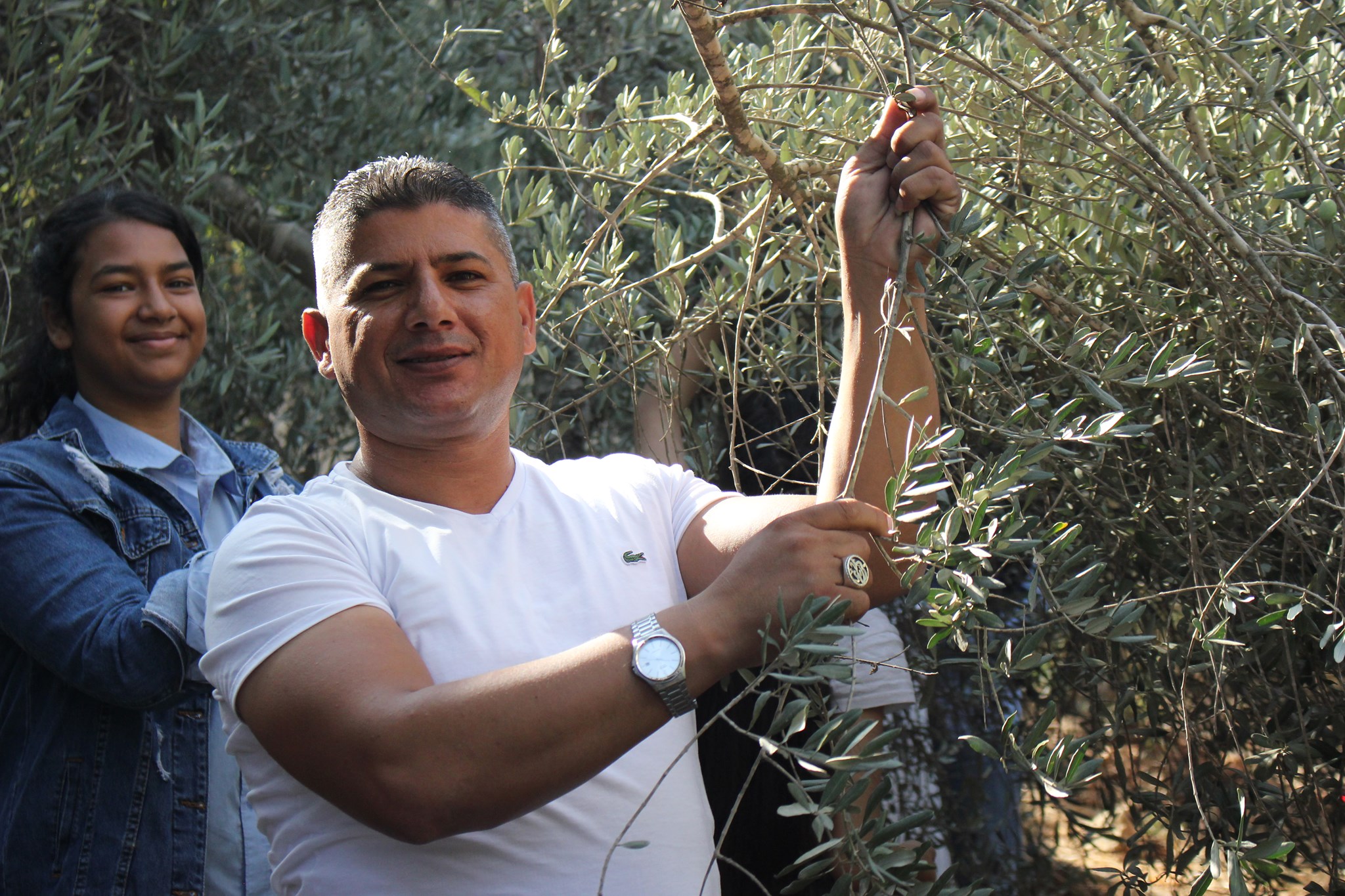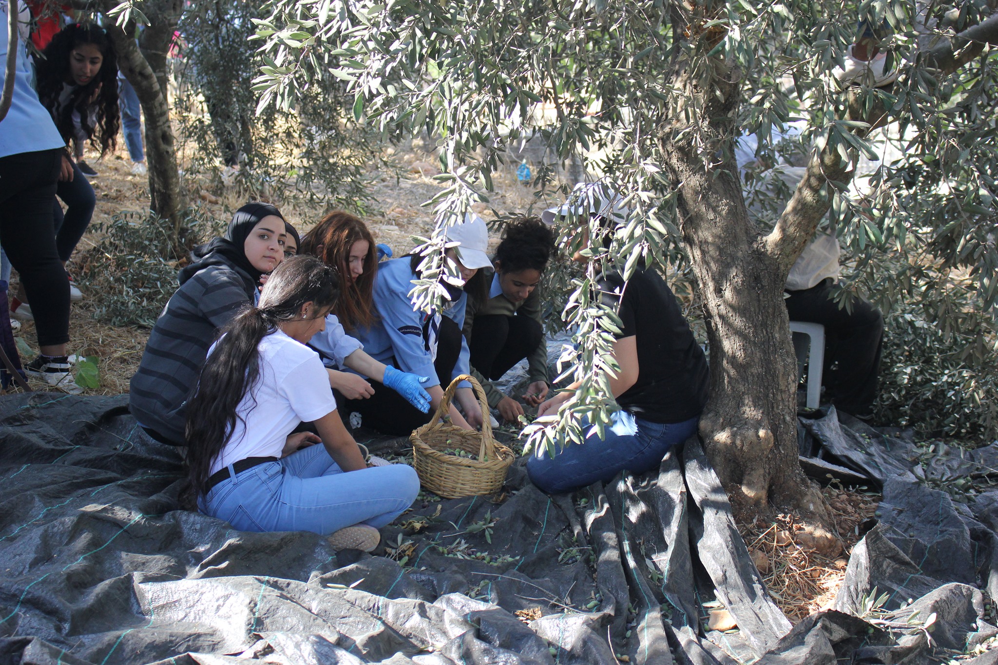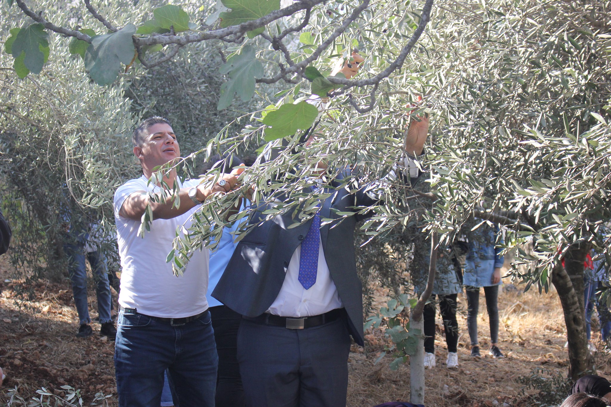 .رئيس البلدية ربحي دولـة خلال مشاركته الى جانب طالبات من مدرسة بنات بيتونيا الثانوية في يوم تطوعي لمساعدة الأهالي في قطف ثمار الزيتون